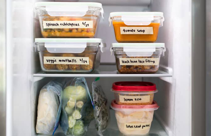- Los alimentos se congelan en bolsas de plástico (preferiblemente reutilizables), o en envases de vidrio. Estos ayudan a proteger el alimento del frío, y también evitan que la refrigeradora se llene de olores.