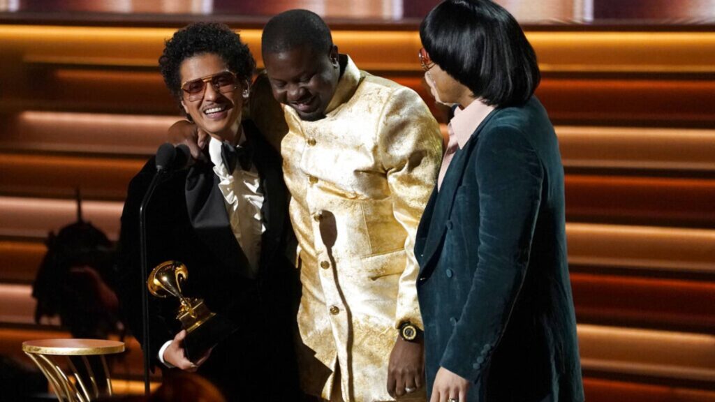 Silk Sonic opta a tres galardones más este año: a la mejor grabación, mejor actuación R&B y a la mejor canción de este género con “Leave The Door Open”.
