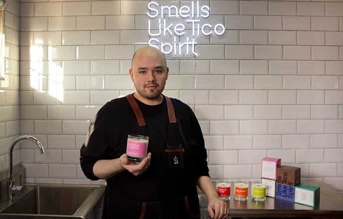 Regresó a Costa Rica con un proyecto en sus maletas, Smells Like Tico Spirit, velas con aromas representativos de vivencias costarricenses que nos transportan a experiencias muy nuestras, como Churchill, Fresas del volcán, Fresco de caso o el aroma de un Aguacero.