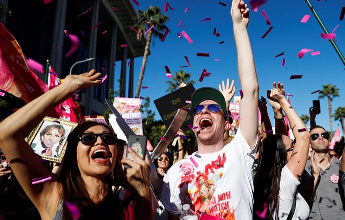 Tras hacerse pública la decisión, cientos de seguidores de la cantante, de 39 años, congregados fuera de la sede de la Corte Superior de Los Ángeles reaccionaron de inmediato lanzando confeti rosa al aire y con cánticos a favor de Spears, que había tachado de “abusiva” su tutela legal con anterioridad.